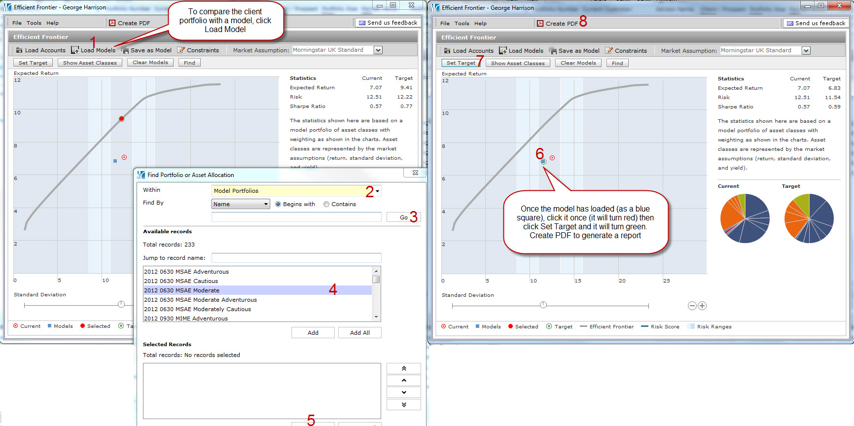 You can quickly assess the risk profile of a client’s portfolio by using the Efficient Frontier graph. Include model portfolios and back up your investment recommendation with a report highlighting the projected risk/return of each.