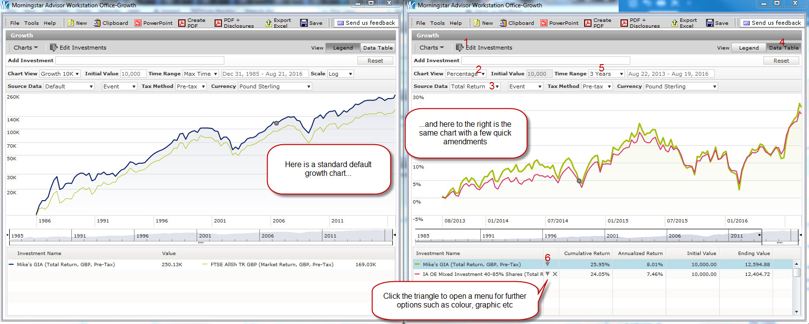 If you would like to view comprehensive information on an investor’s portfolio, the Snapshot report is one of the most relevant in Adviser Workstation, displaying data on performance, allocation and risk among other things. However this can only be run as of the last month or quarter end.