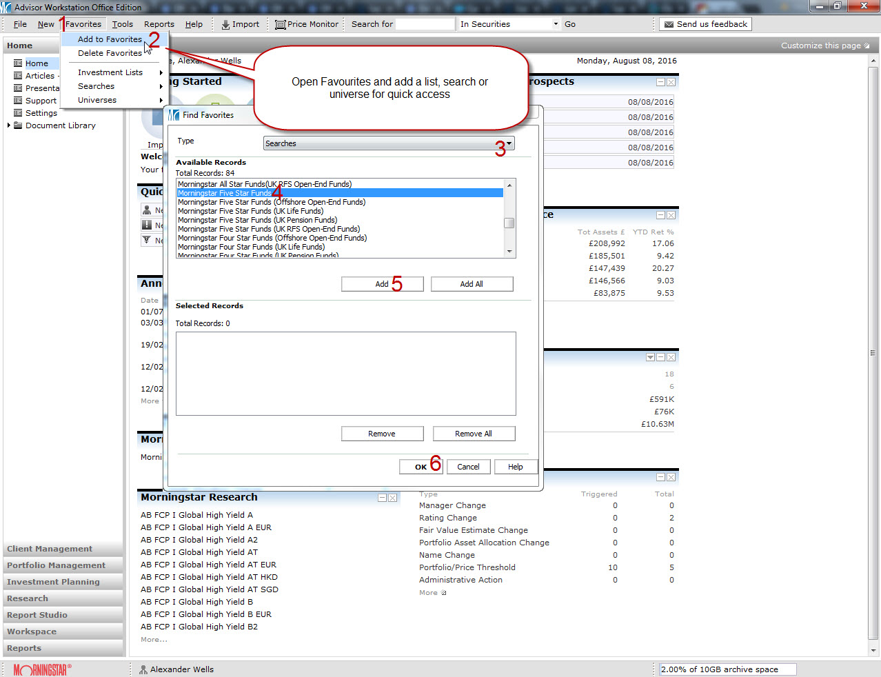If you have saved lists or searches that you use on a regular basis, consider adding these to your favourites menu for speedy access. Click here to see how.