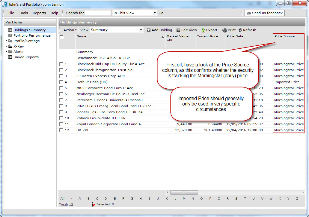 Ensure your portfolio is using Morningstar pricing, if not click here to see how to update this