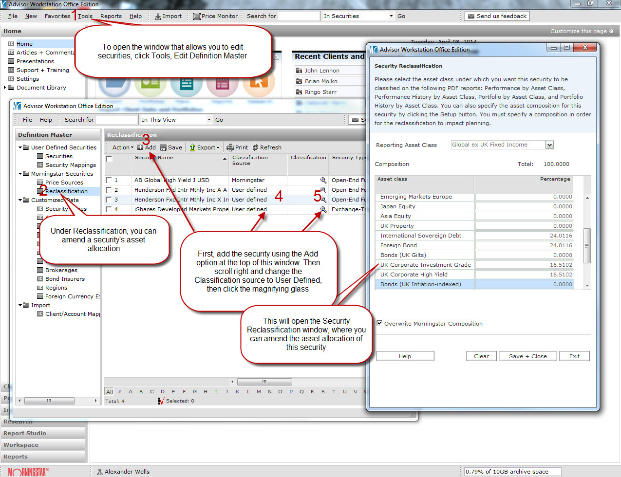 It is also possible change the classification of a Morningstar security, either by changing the asset class or composition.